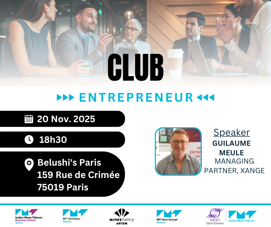 En collaboration avec IMT Business School, IMT Atlantique, Mines Saint Etienne et Mines Nancy, le Club Entrepreneur te propose de participer à une Edition spéciale FInancement Jeudi 20 novembre 202518h30Le Belushi's Bar Canal, 159 Rue de Crimée, 75019 Paris Thè...